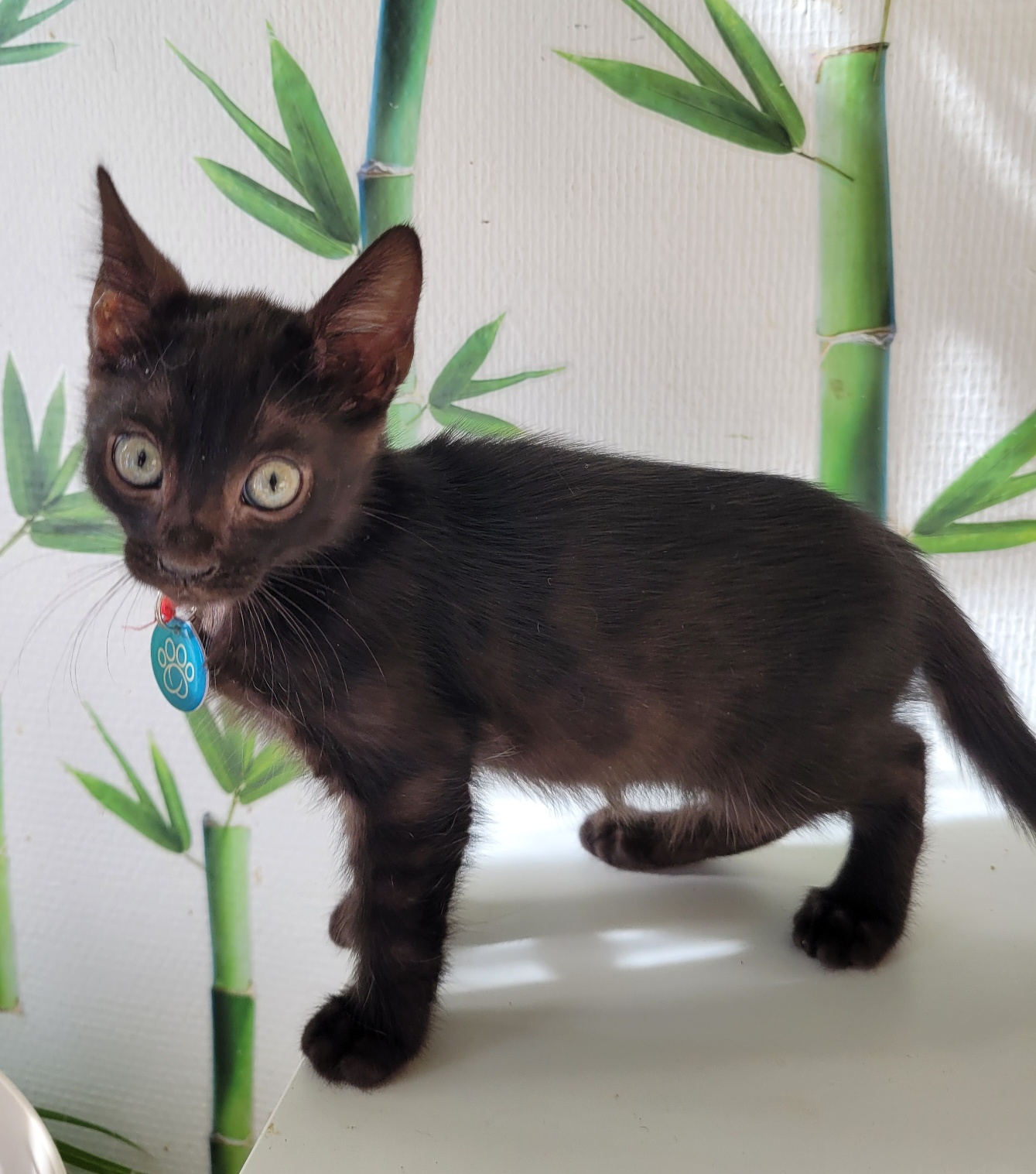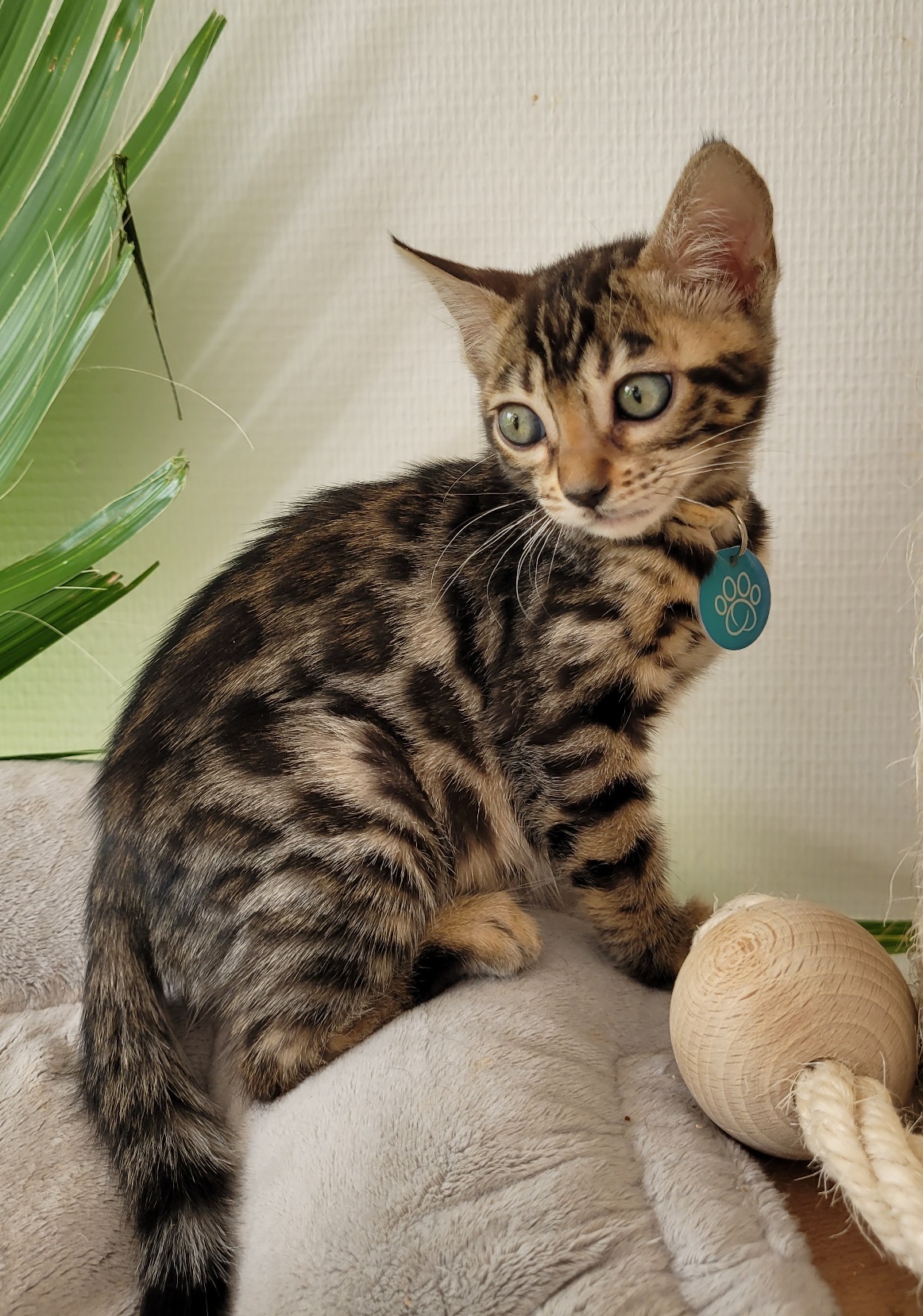 Melia ist ein liebes süßes Bengal-Mädchen. Sie ist anfangs etwas schüchtern, aber dann siegt ganz schnell die Neugierde und alles wird untersucht. Auch sie kuschelt gern, obwohl sie im Moment kittentypisch nicht lange ruhig sitzen kann. Sie hat eine sehr schöne Optik mit schönen Rosetten und tollen ausdrucksstarken Augen.